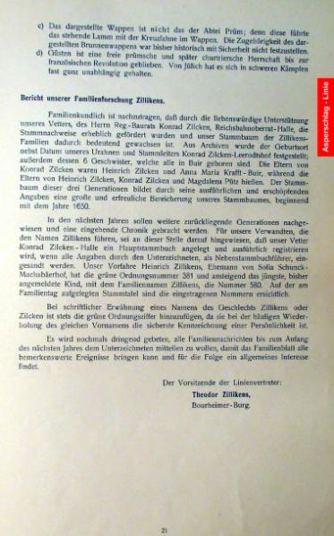 Auszug aus der Geschichte der Familie Zillikens | ||||