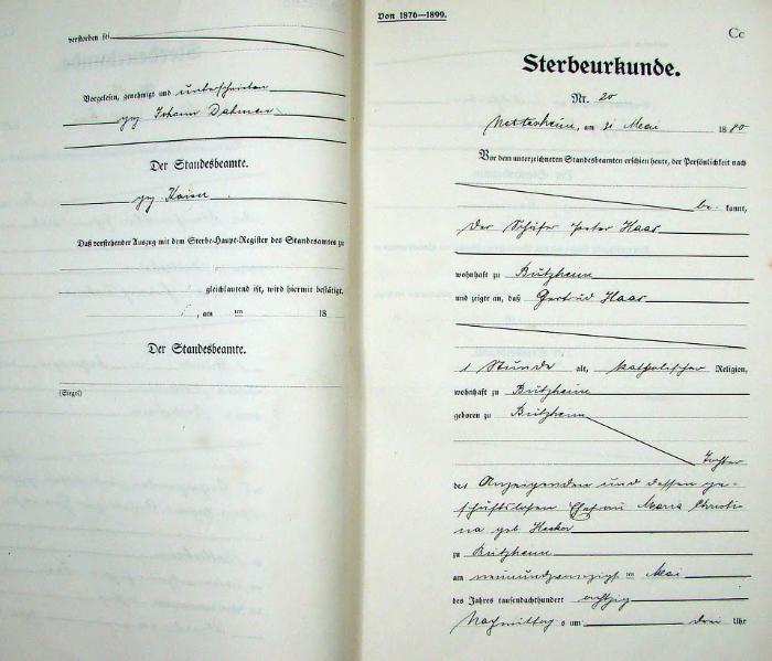Bürgermeisterei Nettesheim, Sterbe-Register von 1880