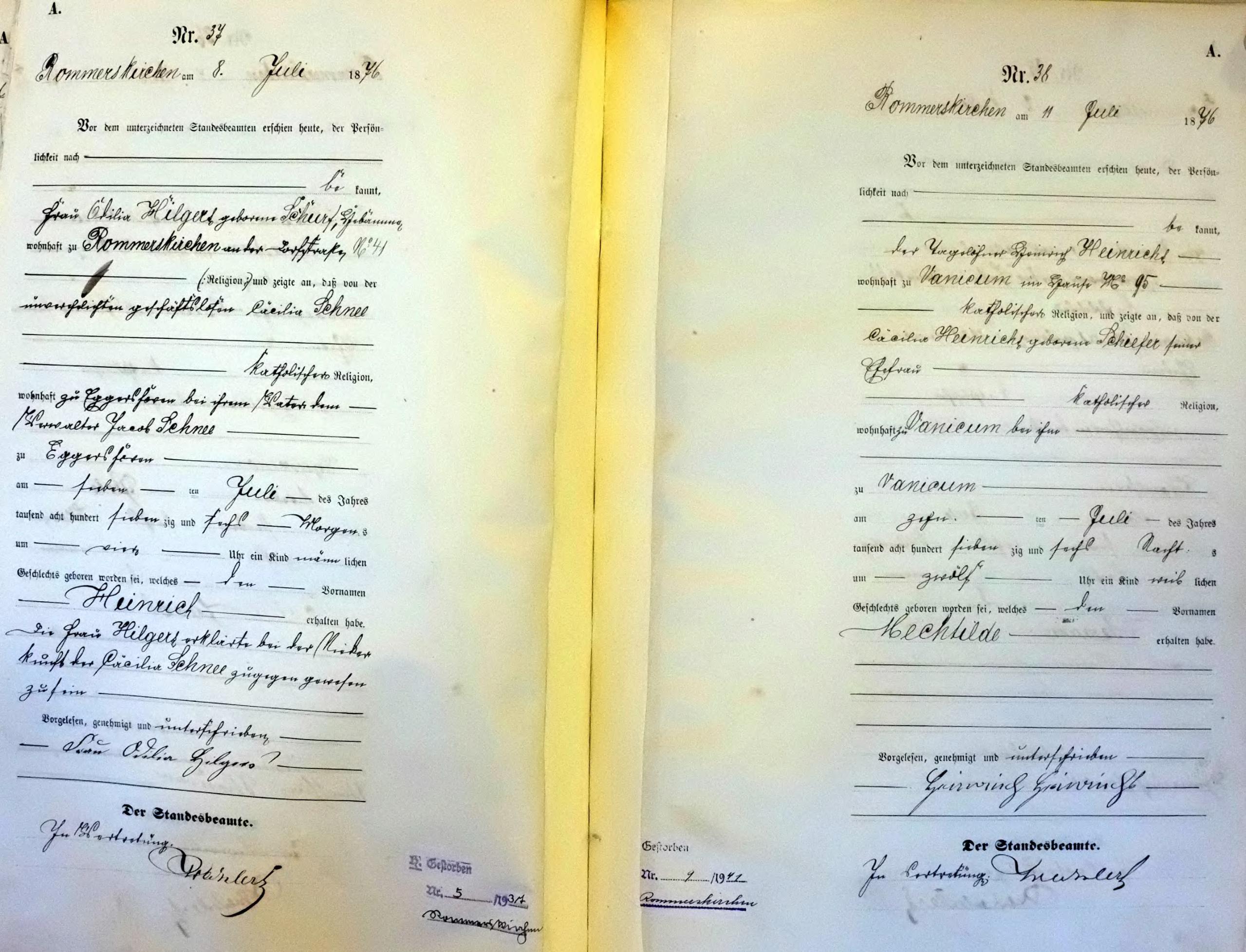 "Standesamtregister aus dem Gemeindearchiv Rommerskirchen"
