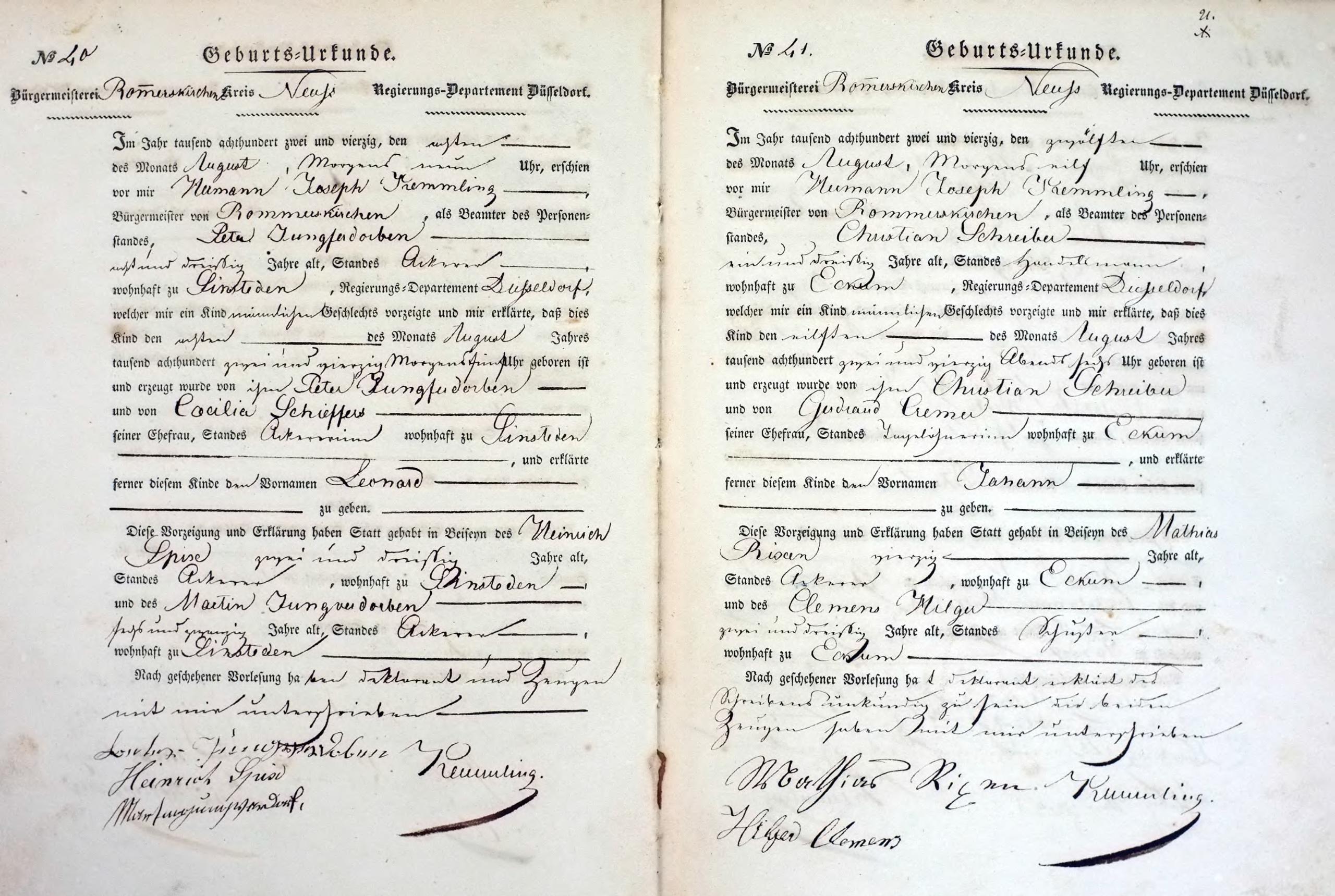 "Standesamtregister aus dem Gemeindearchiv Rommerskirchen"