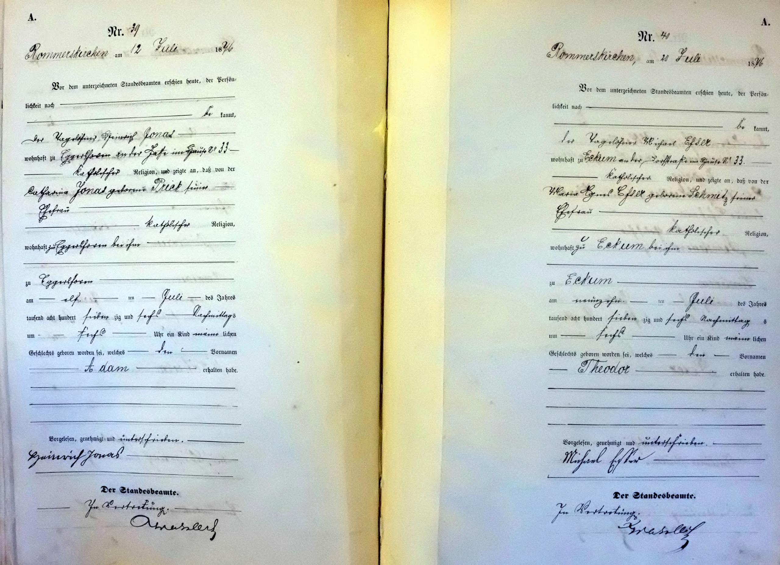"Standesamtregister aus dem Gemeindearchiv Rommerskirchen"