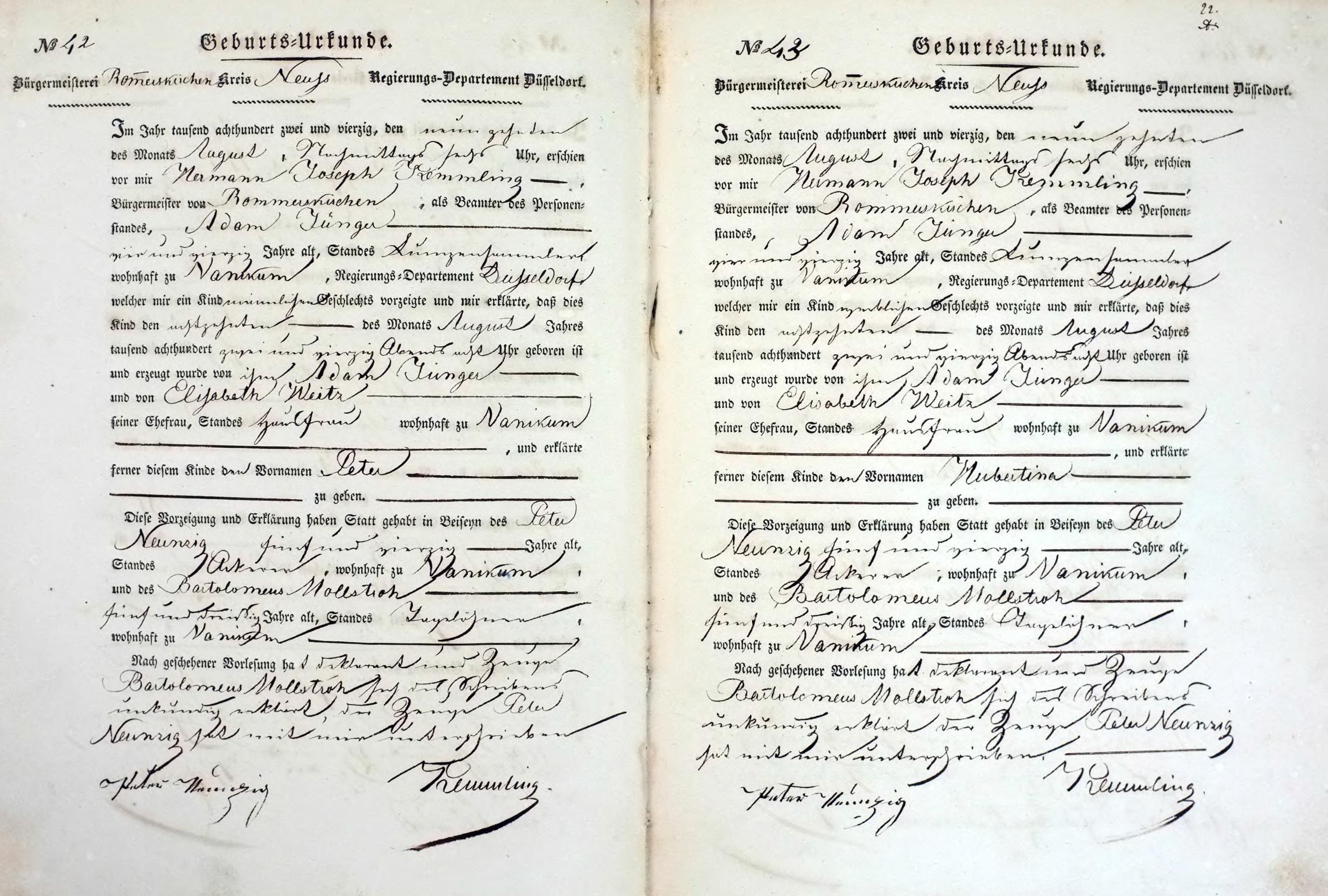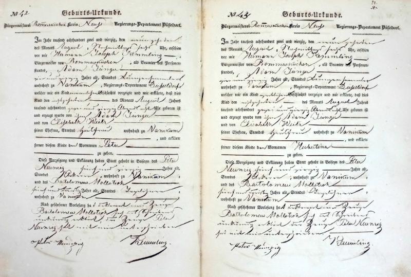 | aktuell | 20:38, 6. Aug. 2011 | 1.734 × 2.234, 41 Seiten (19,79 MB) | KlausErdmann (Diskussion • Beiträge) | {{Information |Beschreibung = ;Bürgermeisterei Rommerskirchen:Register der Geburts-Urkunden 1842 |Quelle = Gemeindearchiv Rommerskirchen |Urheber = |Datum = 1842 |Scans = Klaus Erdmann ''(Repr |