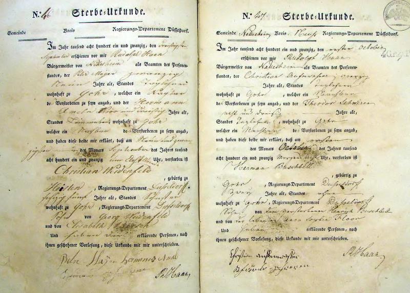 | aktuell | 15:09, 14. Okt. 2011 | 1.024 × 1.507, 35 Seiten (5,58 MB) | KlausErdmann (Diskussion • Beiträge) | {{Information |Beschreibung = ;Standesamt Nettesheim, Sterbeurkunden von 1821 |Quelle = Gemeindearchiv Rommerskirchen |Urheber = |Datum = 1821 |Scans = Klaus Erdmann ''(Repro: 13. Oktober 2011) |