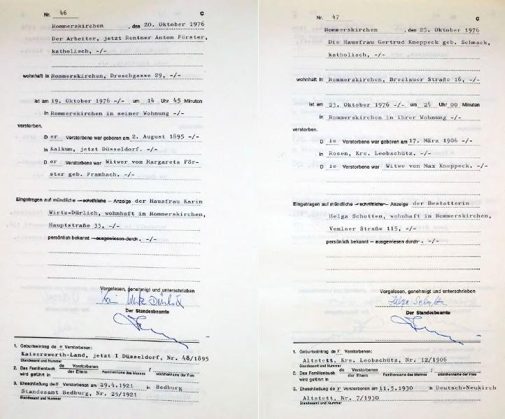 "Standesamtregister aus dem Gemeindearchiv Rommerskirchen"