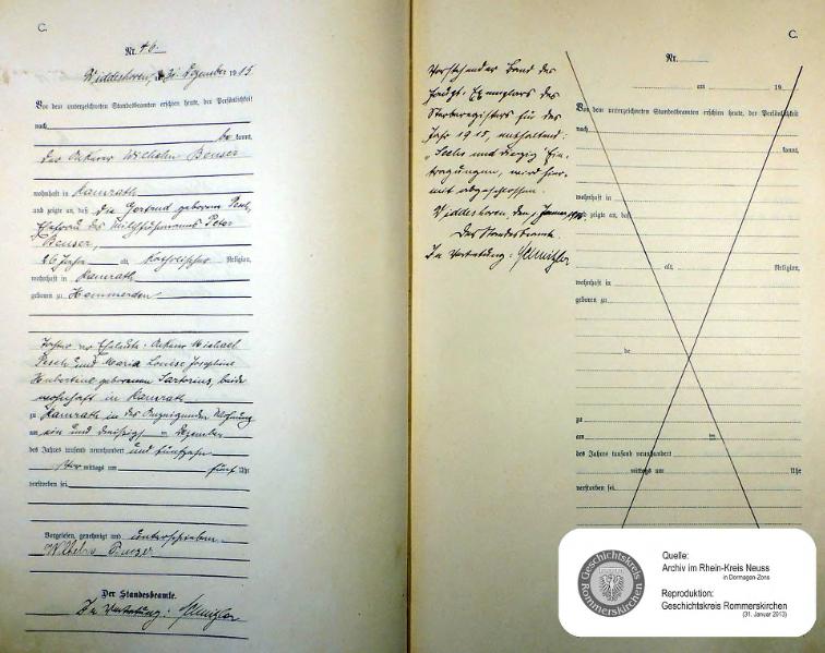 "Standesamtregister aus dem Gemeindearchiv Rommerskirchen"