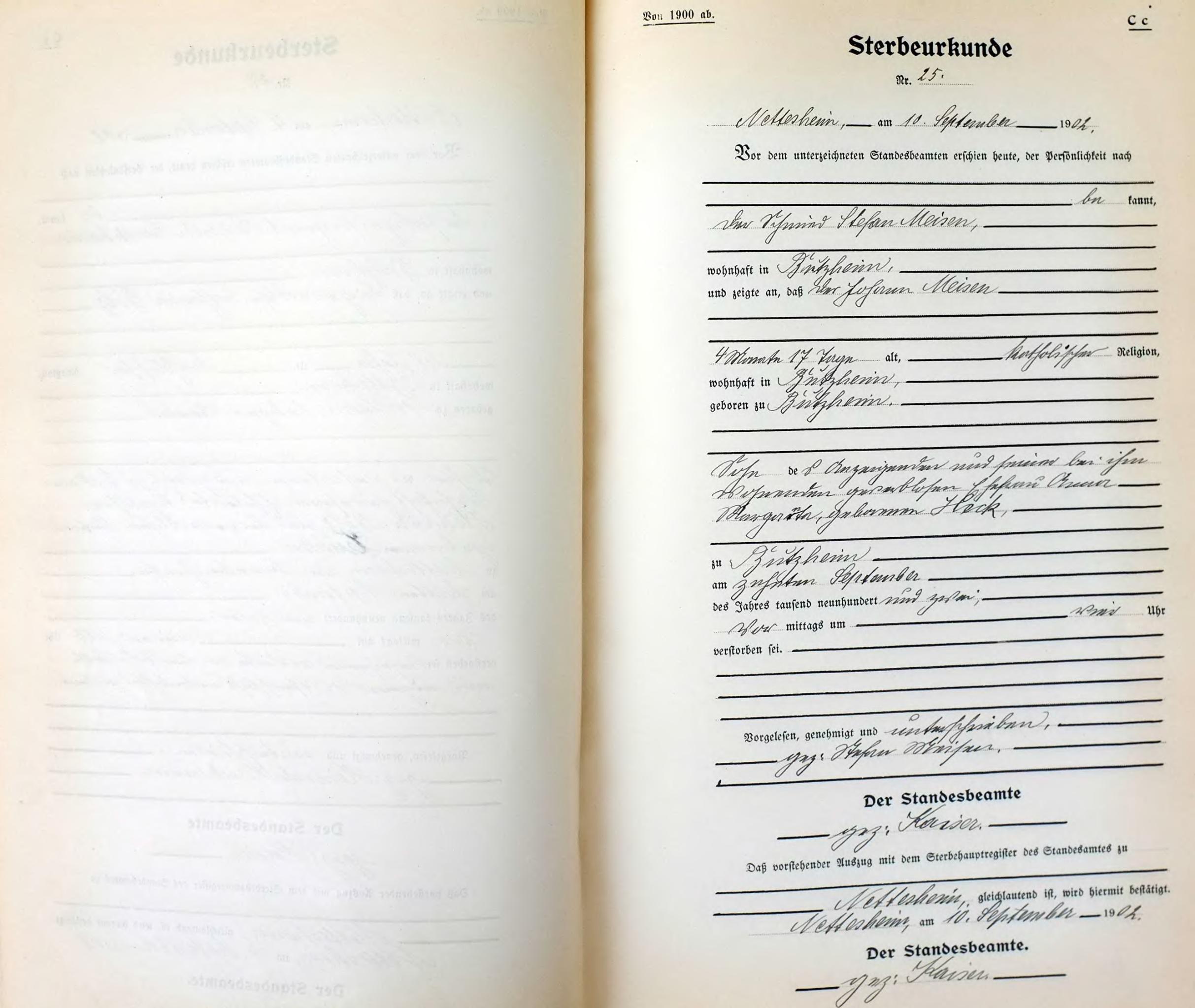 "Standesamtregister aus dem Gemeindearchiv Rommerskirchen"