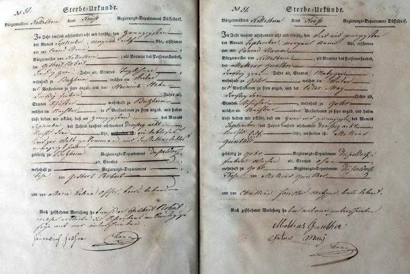 | aktuell | 14:50, 21. Okt. 2011 | 1.375 × 1.587, 35 Seiten (11,05 MB) | KlausErdmann (Diskussion • Beiträge) | {{Information |Beschreibung = ;Bürgermeisterei Nettesheim, Register der Sterbe-Urkunden von 1838 |Quelle = Gemeindearchiv Rommerskirchen |Urheber = |Datum = 1838 |Scans = Klaus Erdmann ''(Repr |