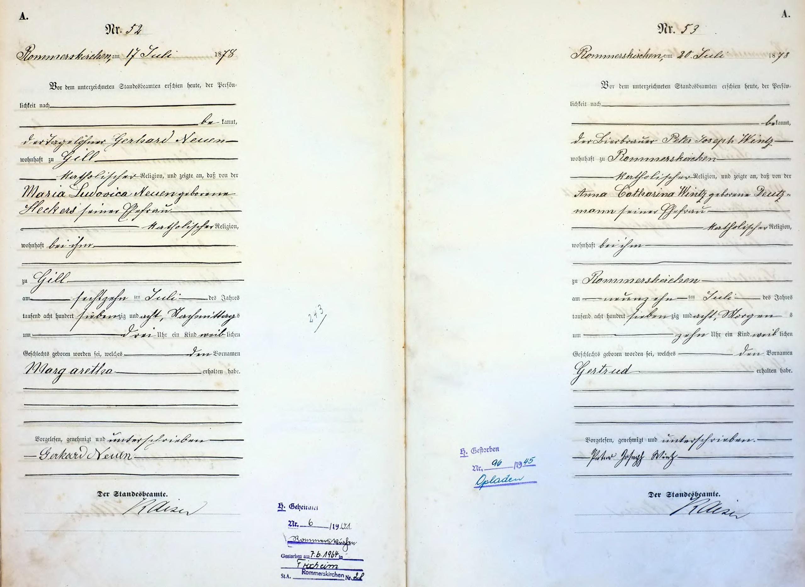"Standesamtregister aus dem Gemeindearchiv Rommerskirchen"