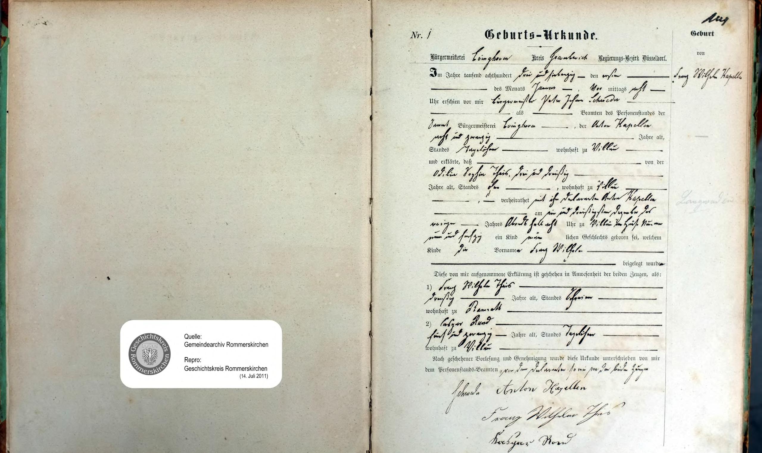 "Standesamtregister aus dem Gemeindearchiv Rommerskirchen"