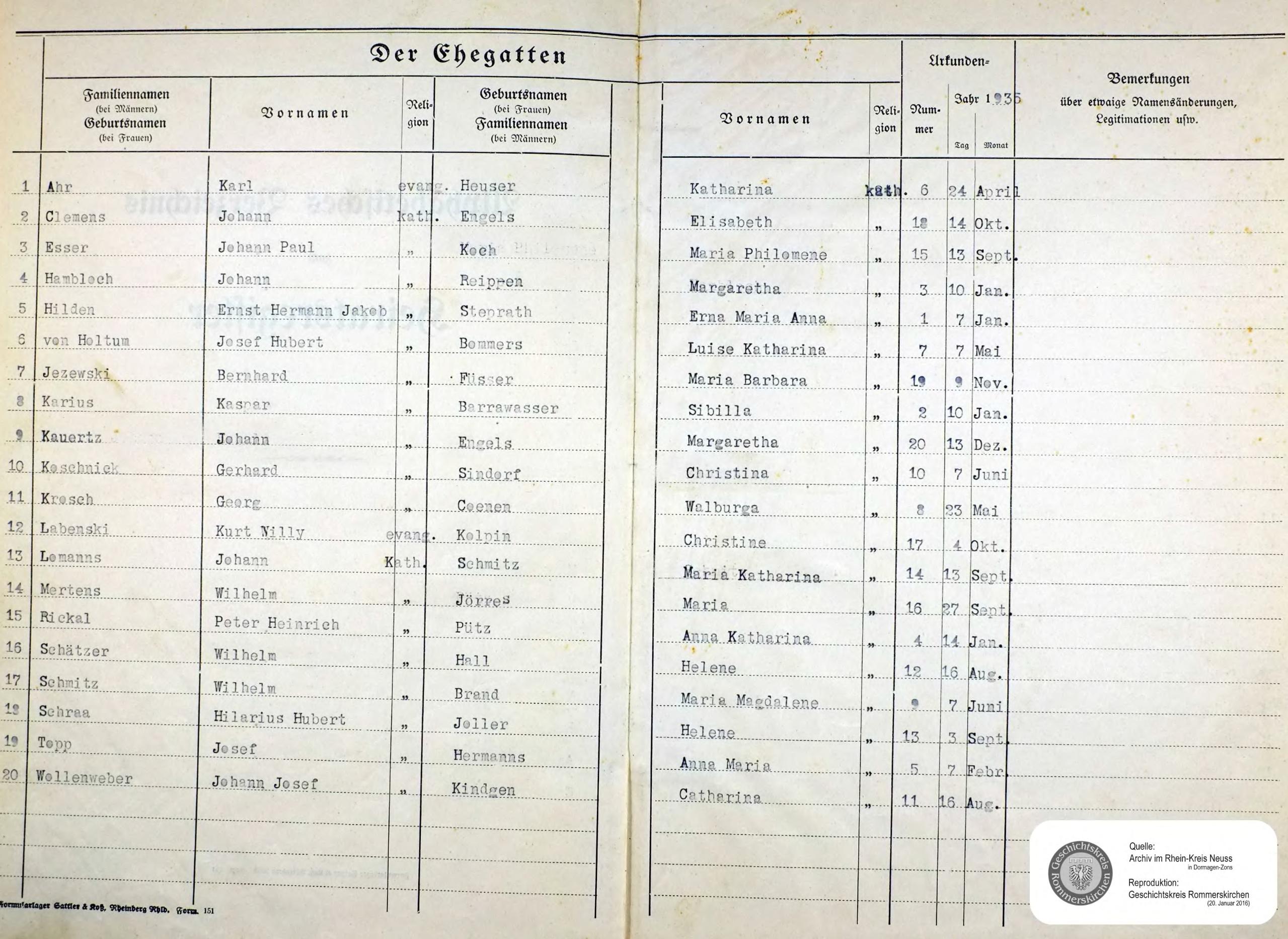 "Standesamtregister aus dem Gemeindearchiv Rommerskirchen"