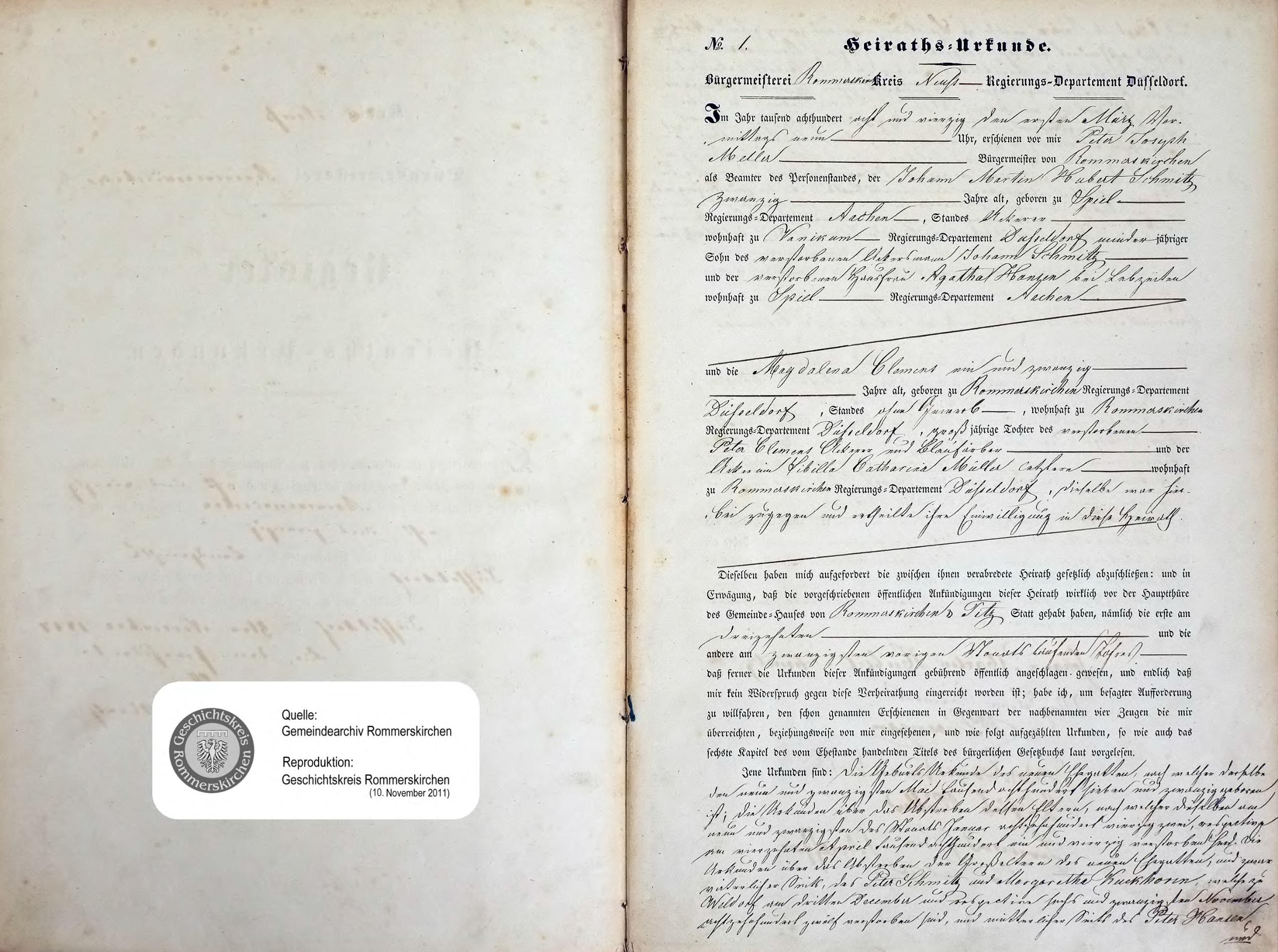 "Standesamtregister aus dem Gemeindearchiv Rommerskirchen"