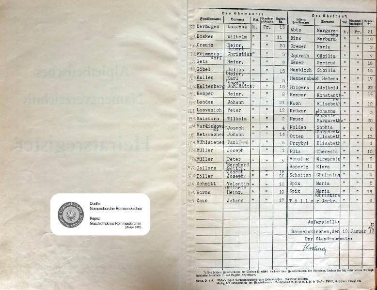 "Standesamtregister aus dem Gemeindearchiv Rommerskirchen"