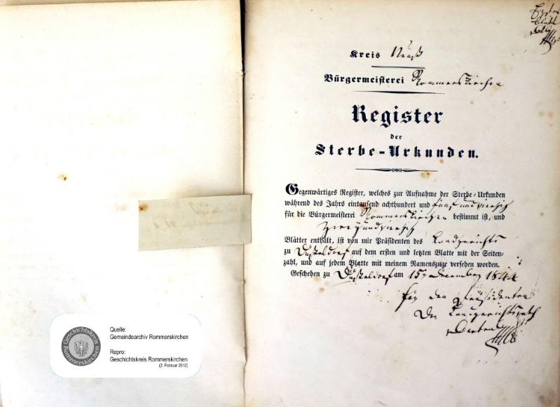 "Standesamtregister aus dem Gemeindearchiv Rommerskirchen"