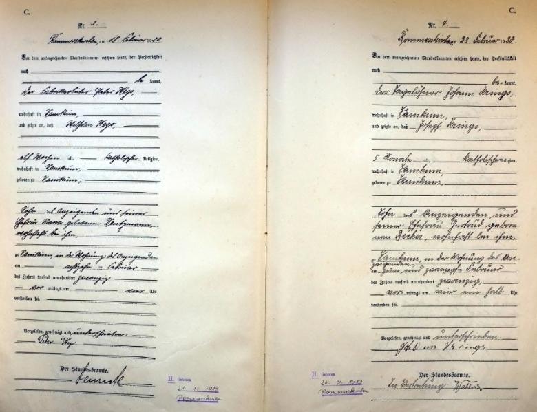 "Standesamtregister aus dem Gemeindearchiv Rommerskirchen"