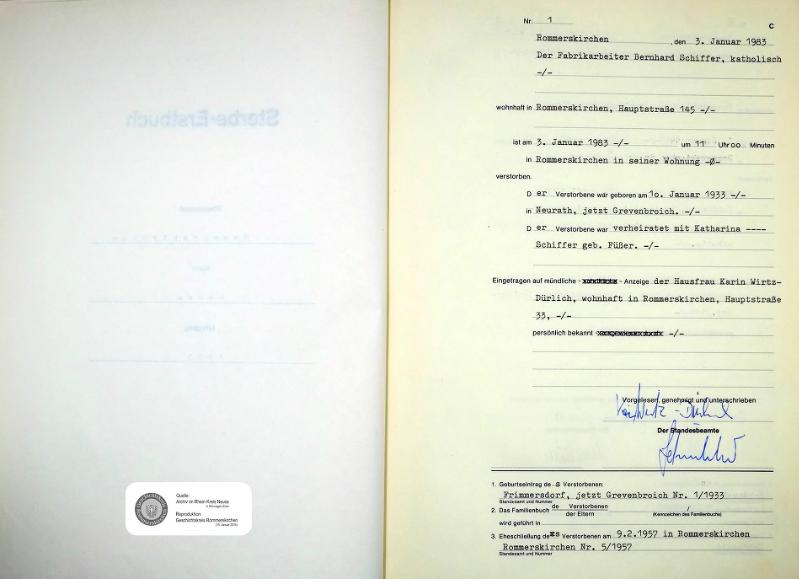 "Standesamtregister aus dem Gemeindearchiv Rommerskirchen"