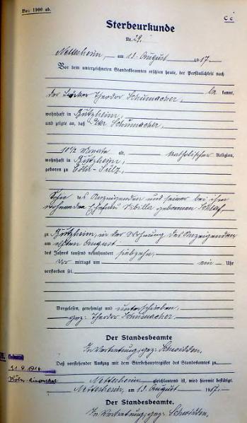 Standesamt Nettesheim, Sterberegister von 1917