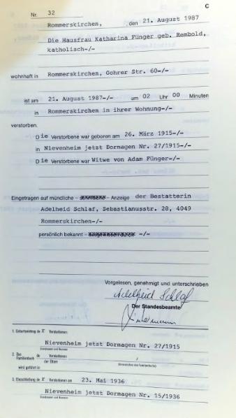 "Standesamtregister aus dem Gemeindearchiv Rommerskirchen"