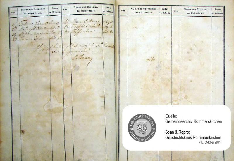 | aktuell | 15:09, 14. Okt. 2011 | 1.024 × 1.507, 35 Seiten (5,58 MB) | KlausErdmann (Diskussion • Beiträge) | {{Information |Beschreibung = ;Standesamt Nettesheim, Sterbeurkunden von 1821 |Quelle = Gemeindearchiv Rommerskirchen |Urheber = |Datum = 1821 |Scans = Klaus Erdmann ''(Repro: 13. Oktober 2011) |