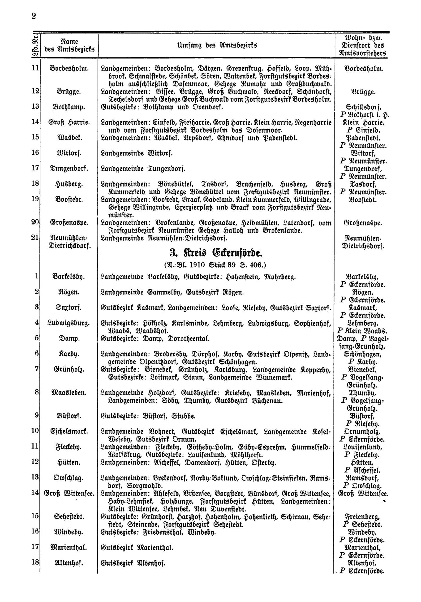 Verzeichnis der Amtsbezirke … der Provinz Schleswig-Holstein | ||