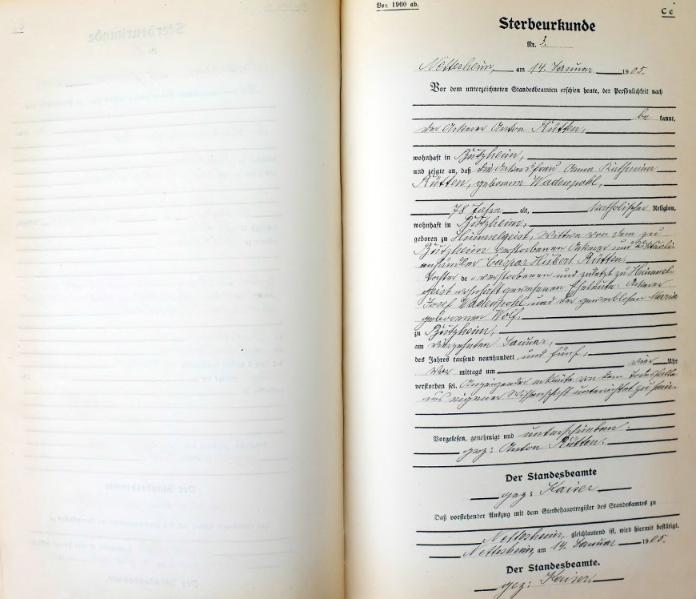 | aktuell | 09:34, 18. Mär. 2012 | 1.786 × 2.310, 55 Seiten (13,21 MB) | KlausErdmann (Diskussion • Beiträge) | {{Information |Beschreibung = ;Standesamt Nettesheim, Sterbe-Register von 1905 |Quelle = Gemeindearchiv Rommerskirchen |Urheber = |Datum = 1905 |Scans = Klaus Erdmann ''(Repro: 16.März 2012)'' |