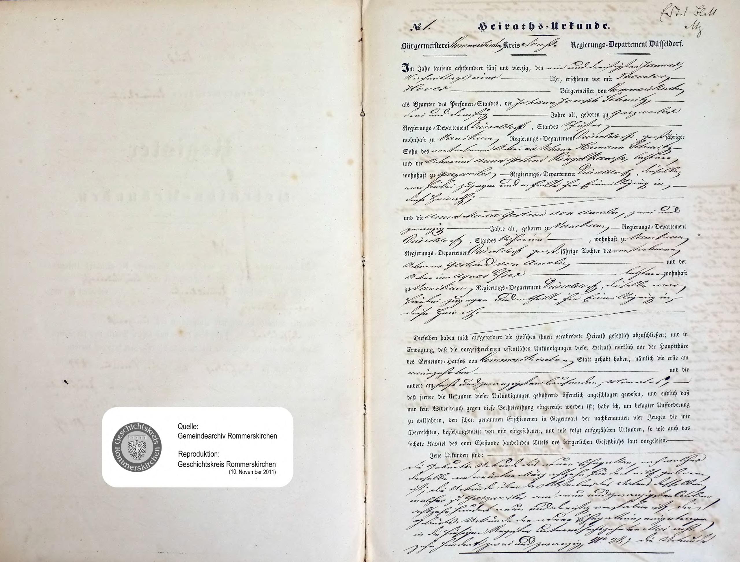 "Standesamtregister aus dem Gemeindearchiv Rommerskirchen"