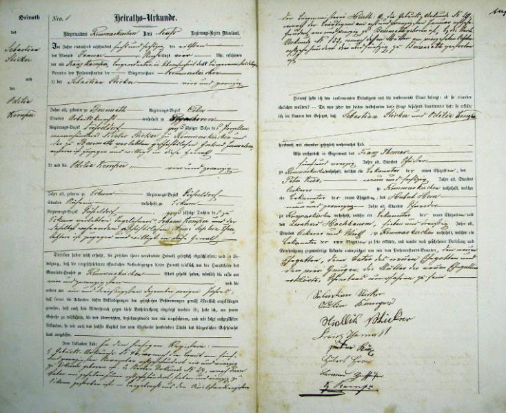 - Standesamt Rommerskirchen, Register der Heirats-Urkunden für das Jahr 1866