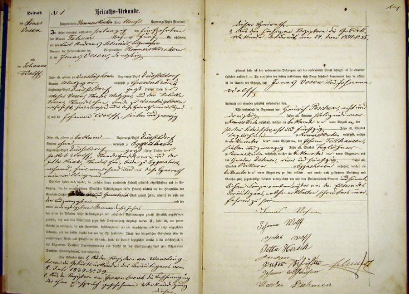 - Standesamt Rommerskirchen, Register der Heirats-Urkunden für das Jahr 1870