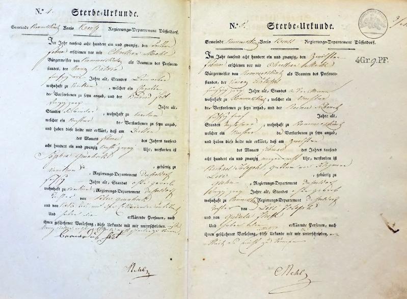 Bürgermeisterei Rommerskirchen, Sterbe-Urkunden 1821