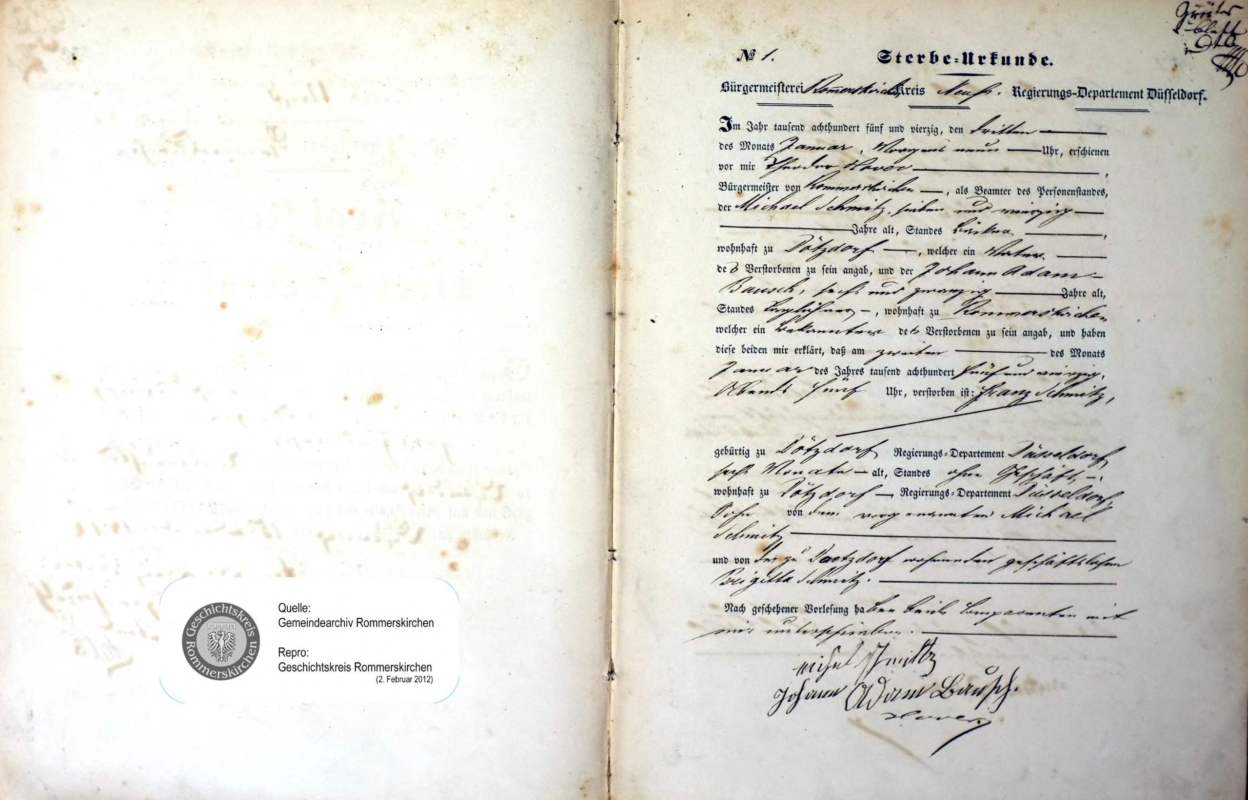 "Standesamtregister aus dem Gemeindearchiv Rommerskirchen"