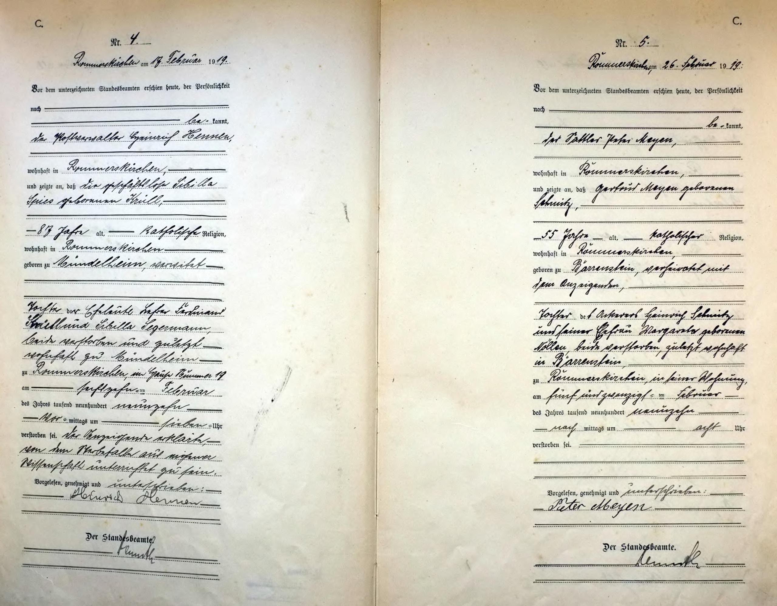 "Standesamtregister aus dem Gemeindearchiv Rommerskirchen"