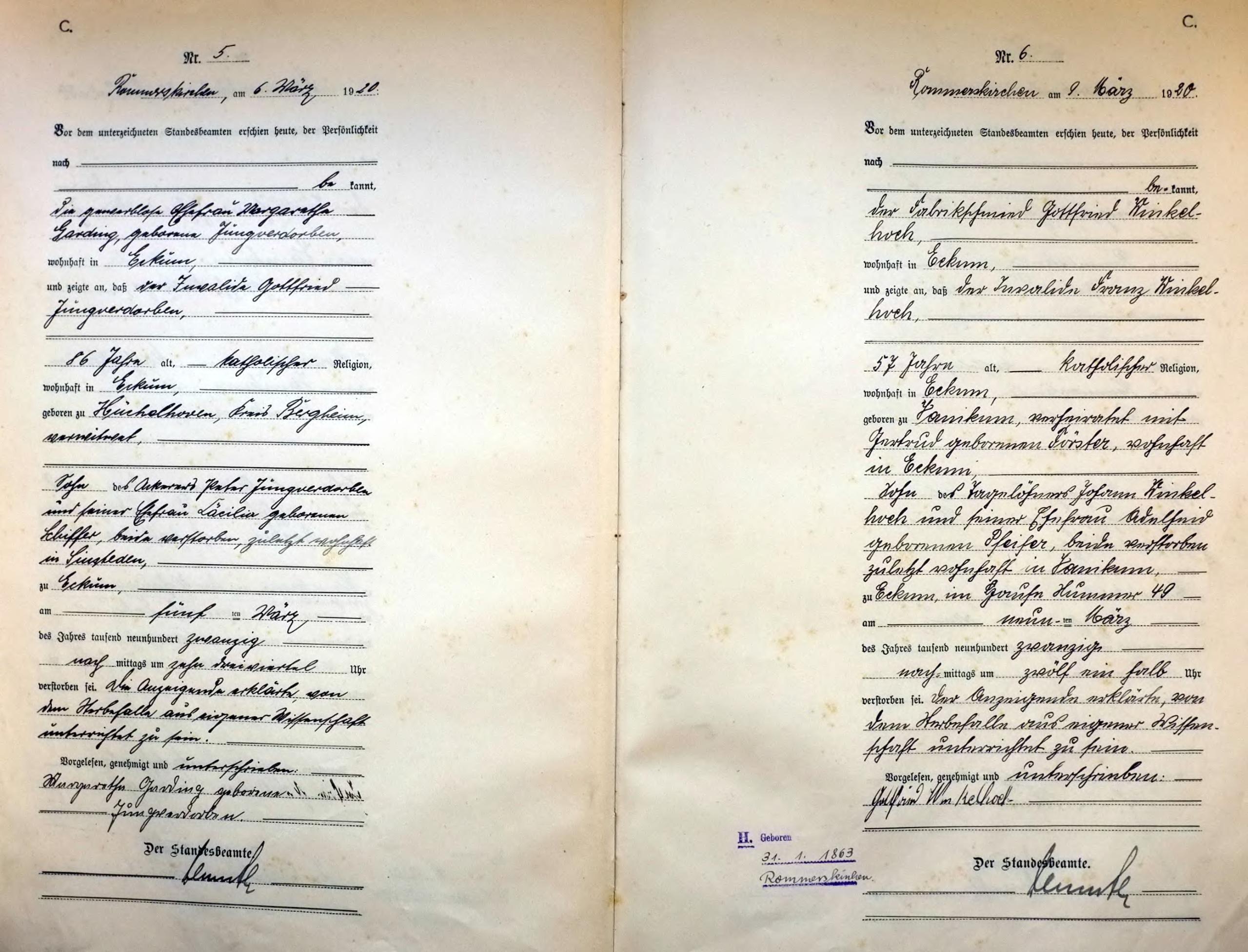 "Standesamtregister aus dem Gemeindearchiv Rommerskirchen"