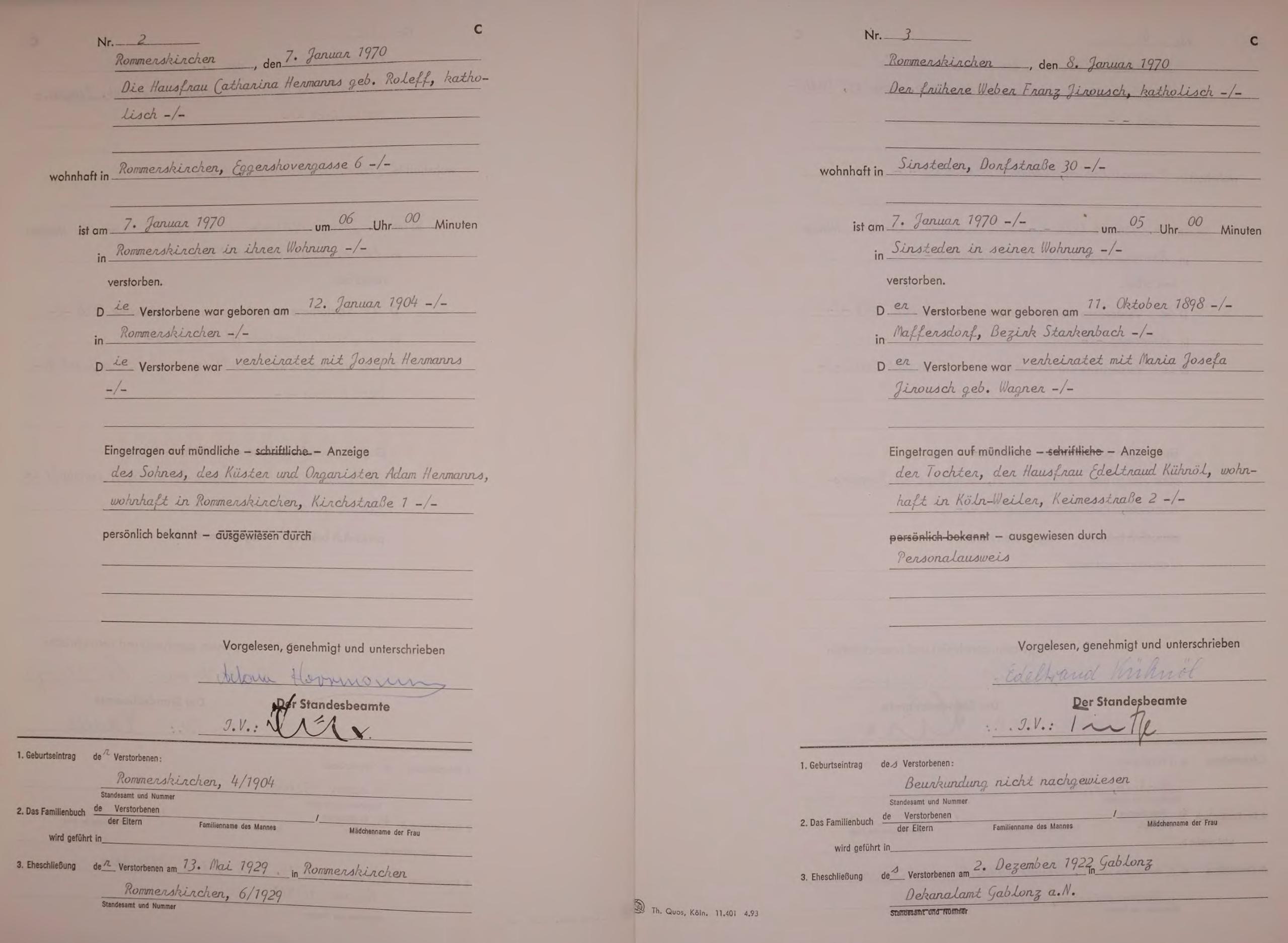 "Standesamtregister aus dem Gemeindearchiv Rommerskirchen"