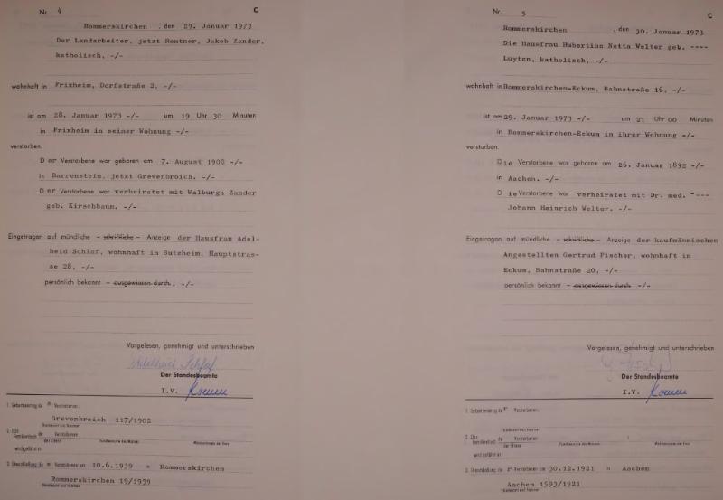 Standesamt Rommerskirchen, Sterberegister von 1973