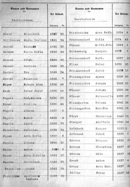 | aktuell | 19:13, 2. Okt. 2010 | 950 × 1.356, 11 Seiten (2,9 MB) | KlausErdmann (Diskussion • Beiträge) | {{Information |Beschreibung = ;Alphabetische Zehnjahres-Liste des Standesamtes Rommerskirchen:Sterbefälle 1833 - 1842 |Quelle = Gemeindearchiv Rommerskirchen |Urheber = |Datum = 1833-1842 |Scans = [[User:KlausErdma |