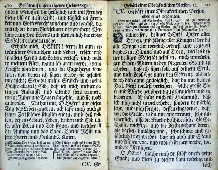 Neu eröffneter himmlischer Weyhrauch-Schatz oder vollständiges Gebätt-Buch. Auf allerhand Zeiten, Anliegen und Personen gerichtet; dabey ein genugsamer Unterricht vom Gebrauch des Heil. Abendmahls, Besuchungen der Krancken, und Zubereitung der zum Tode verurtheilten Personen, etc. samt behörigen Gebätten: Auß den aller-berühmtesten Englisch- und Französischen Theologis übersetzt und zusammen gezogen durch Johannem Zollikoffern, weiland Cammerern und Pfarrern der Christlichen Gemeinde zu Herisau. | |||