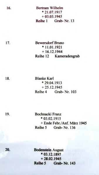 Namensbuch des Ehrenfriedhofes Ormont | ||||