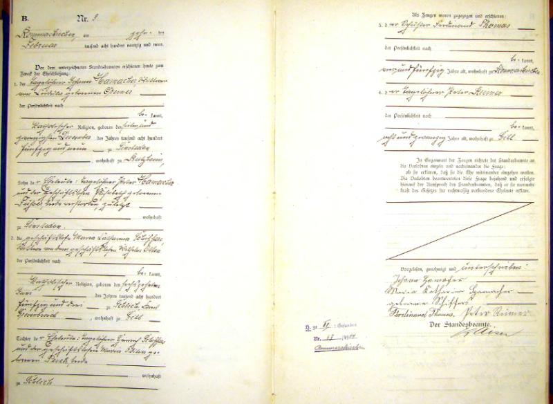 Standesamtsbezirk Rommerskirchen, Register der Heirats-Urkunden pro 1899