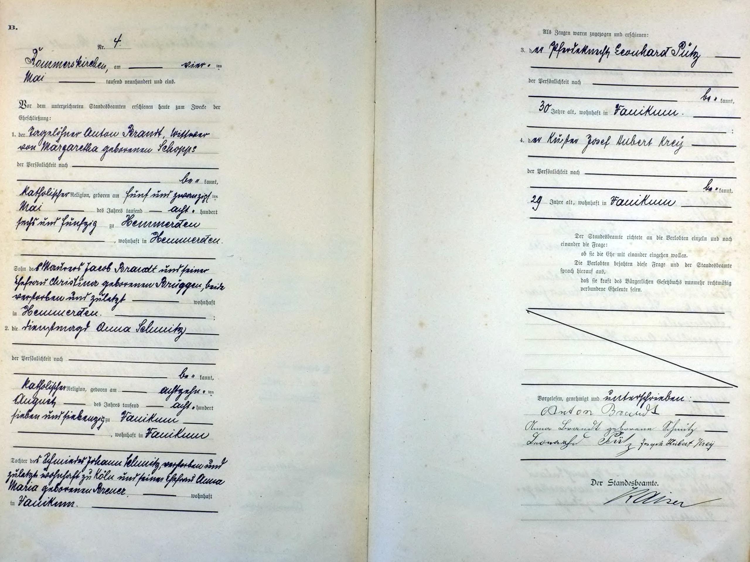 | aktuell | 08:33, 9. Feb. 2013 | 1.482 × 2.298, 13 Seiten (4,09 MB) | KlausErdmann (Diskussion • Beiträge) | {{Information |Beschreibung = ;Standesamt Rommerskirchen, Heiratsregister 1901 |Quelle = Archiv im Rhein-Kreis Neuss |Urheber = |Datum = 1901 |Scans = Klaus Erdmann ''(Repro: 8. Februar 2013)'' |Genehmigun |