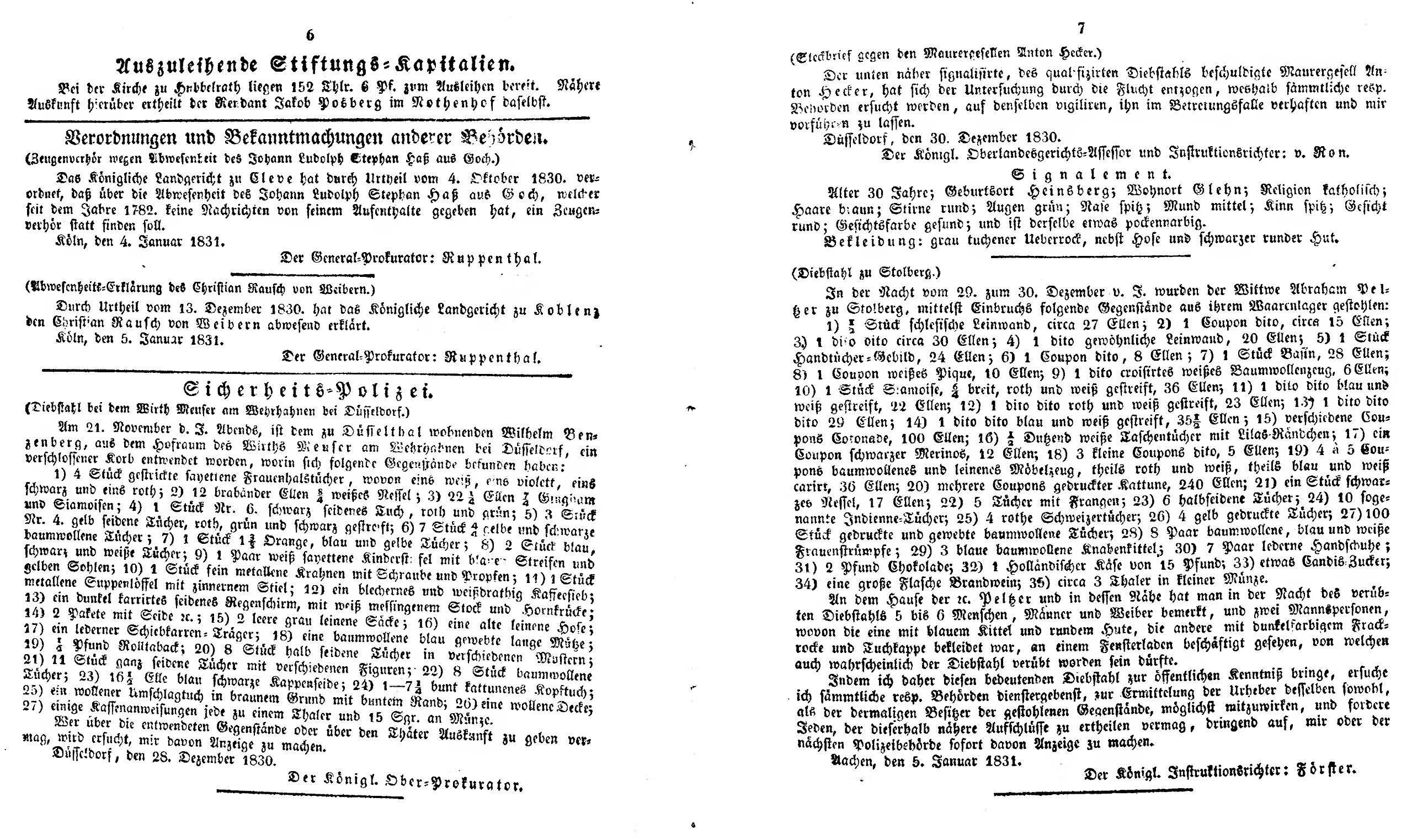 | aktuell | 11:06, 25. Mai 2012 | 2.091 × 2.449, 15 Seiten (987 KB) | KlausErdmann (Diskussion • Beiträge) | {{Information |Beschreibung = ;Amtsblatt der Königlichen Regierung zu Düsseldorf :Jahrgang 1831 - Januar |Quelle = Gemeindearchiv Rommerskirchen |Urheber = Scan & Repro: Klaus Erdmann |Datum = Januar 1831 |Genehmigung = {{Copyrig |