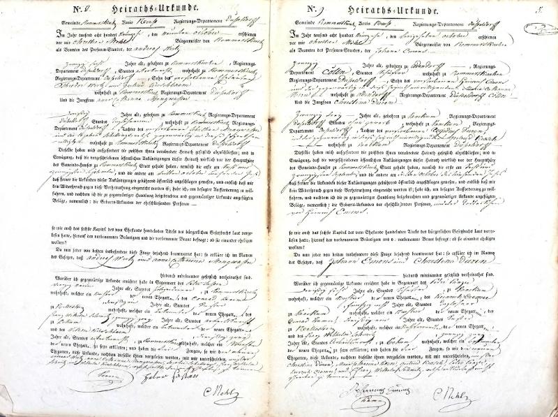 | aktuell | 19:24, 27. Okt. 2011 | 1.142 × 1.674, 9 Seiten (3,96 MB) | KlausErdmann (Diskussion • Beiträge) | {{Information |Beschreibung = ;Standesamt Rommerskirchen, Register der Heirats-Urkunden von 1819 |Quelle = Gemeindearchiv Rommerskirchen |Urheber = |Datum = 1819 |Scans = Klaus Erdmann ''(Repro |