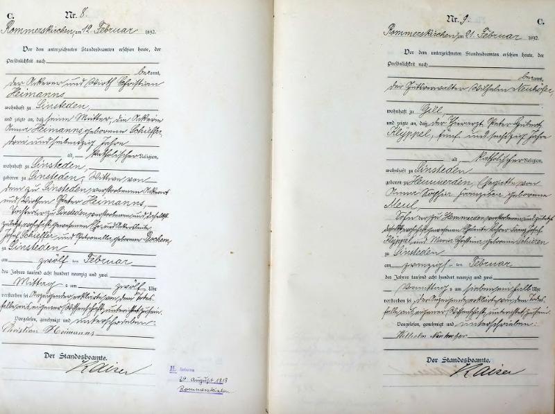 "Standesamtregister aus dem Gemeindearchiv Rommerskirchen"