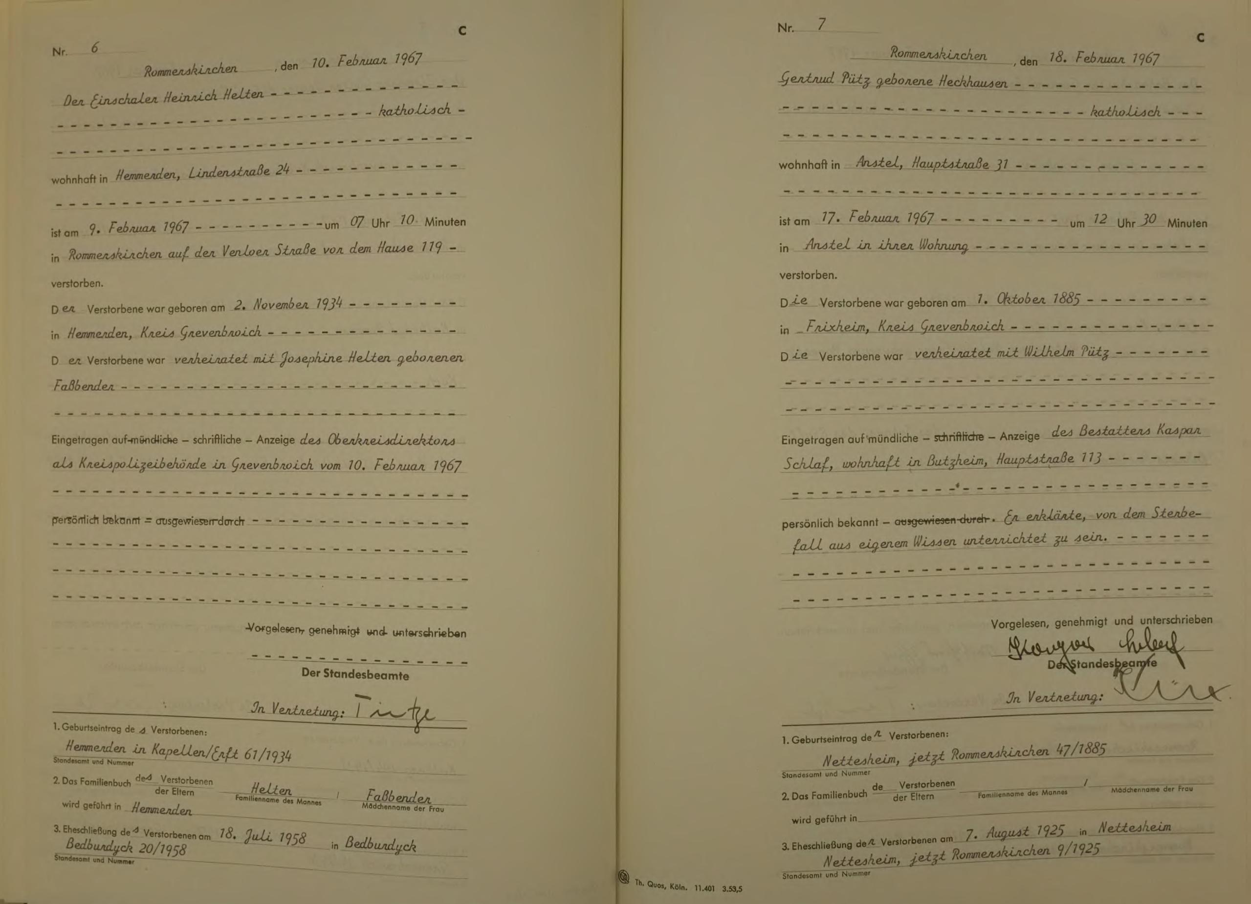"Standesamtregister aus dem Gemeindearchiv Rommerskirchen"
