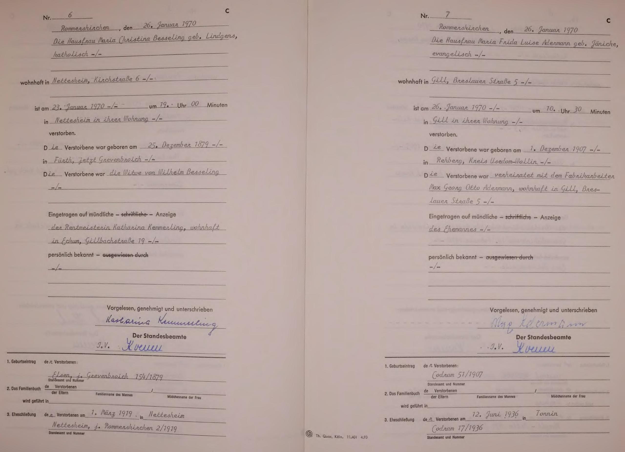 "Standesamtregister aus dem Gemeindearchiv Rommerskirchen"