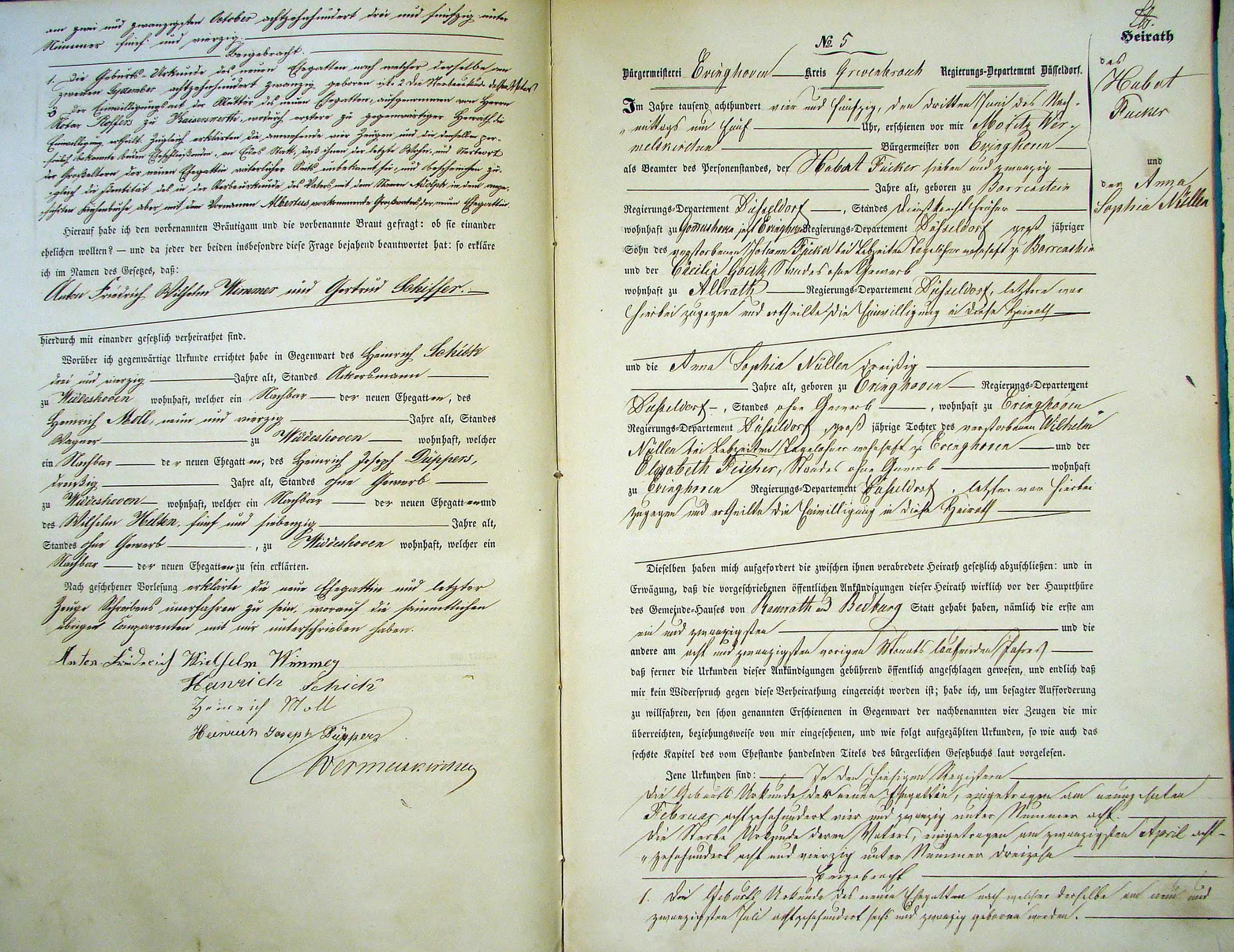 Register der Heirats-Urkunden für das Jahr 1854