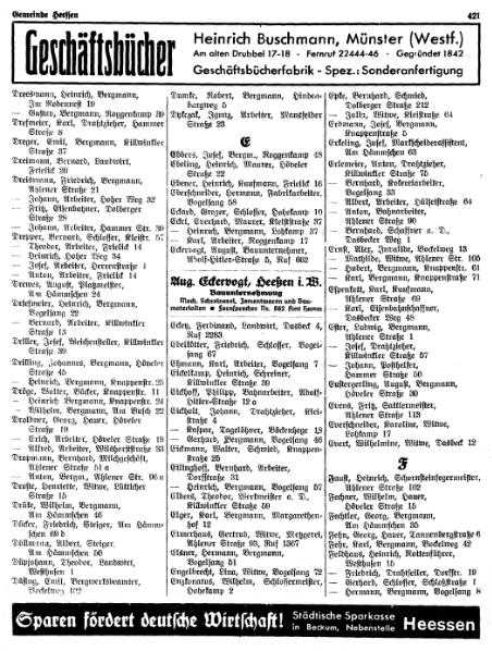 Adressbuch der Gemeinde Heessen von 1938 | |||
