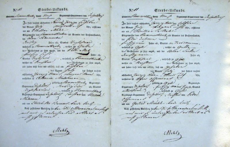 Bürgermeisterei Rommerskirchen, Sterbe-Urkunden 1829