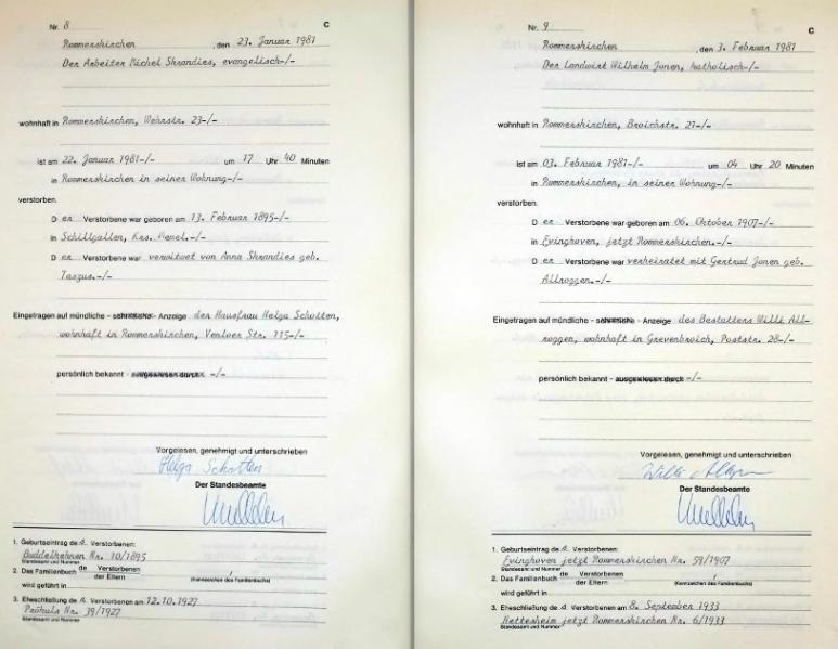 "Standesamtregister aus dem Gemeindearchiv Rommerskirchen"