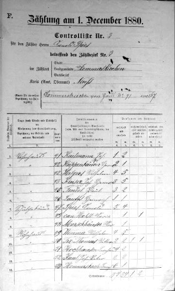 Controllisten der preußischen Volkszählung von 1880 für Rommerskirchen