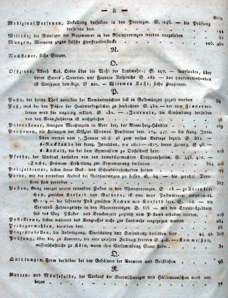 Alphabetisches Sach- und Namen-Register zum Amtsblatt der Königl. Regierung zu Düsseldorf, Jahrgang 1818 | |||