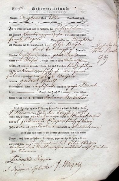 | aktuell | 10:48, 10. Nov. 2010 | 1.507 × 2.695, 10 Seiten (6,31 MB) | KlausErdmann (Diskussion • Beiträge) | {{Information |Beschreibung = ;Gemeinde Evinghoven:Geburts-Urkunden Nr. 51 bis 60/1815 |Quelle = Gemeindearchiv Rommerskirchen |Urheber = |Datum = 1815 |Scans = Klaus Erdmann 12. Aug. 2010 |